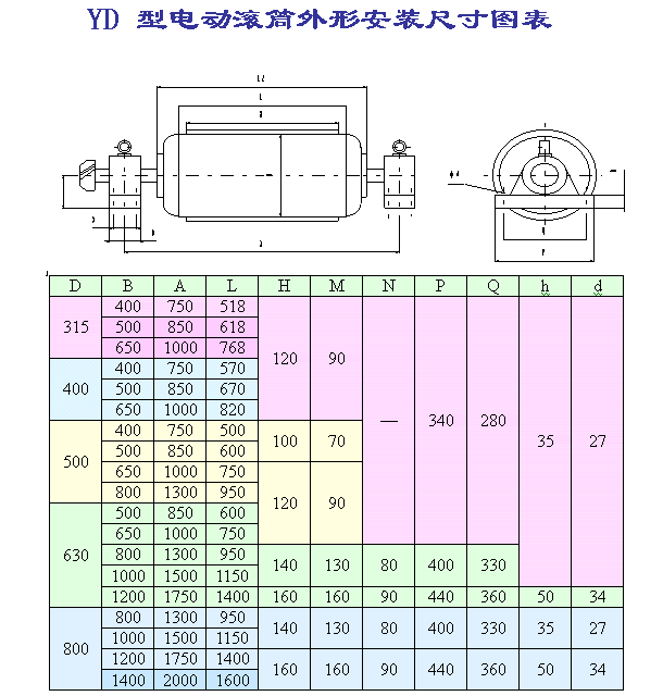 YD油冷式電動滾筒參數(shù):