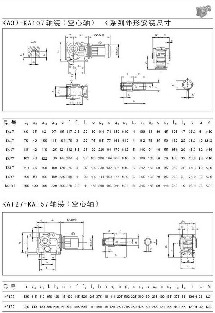 KA37-KA107軸裝(空心軸) K系列外型安裝尺寸?KA127-KA157軸裝(空心軸)