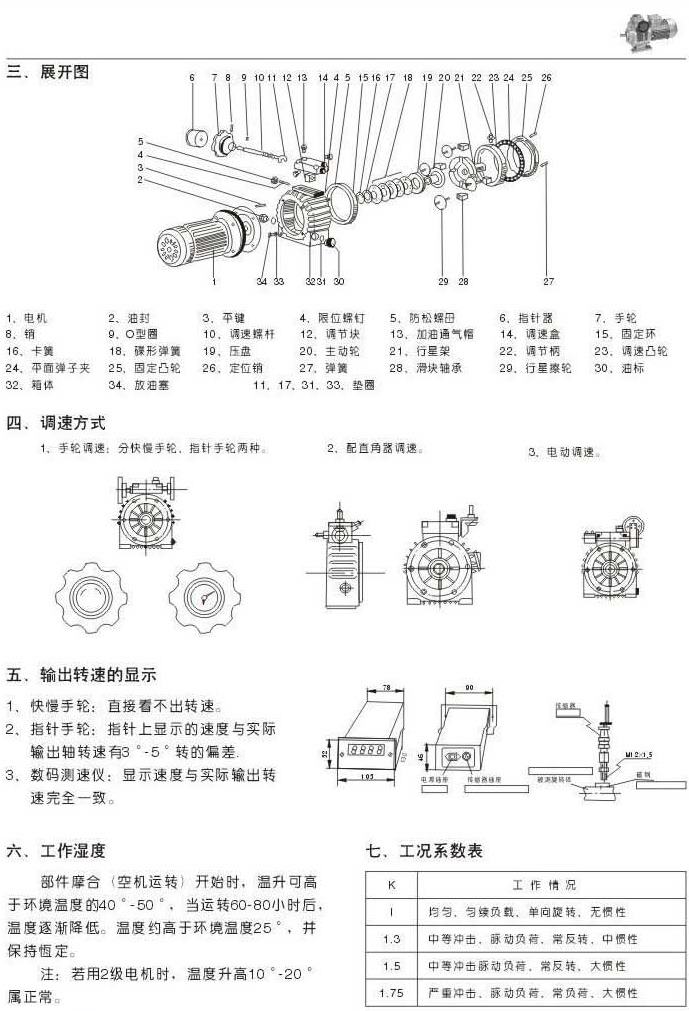 結(jié)構(gòu)展開圖調(diào)速方式輸出轉(zhuǎn)速的顯示工作濕度工況系數(shù)表