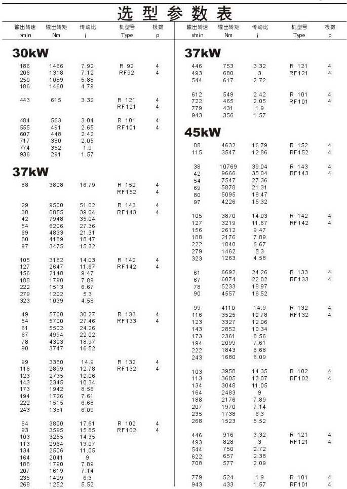 選型參數表30kW(續(xù)),37kW,45kW
